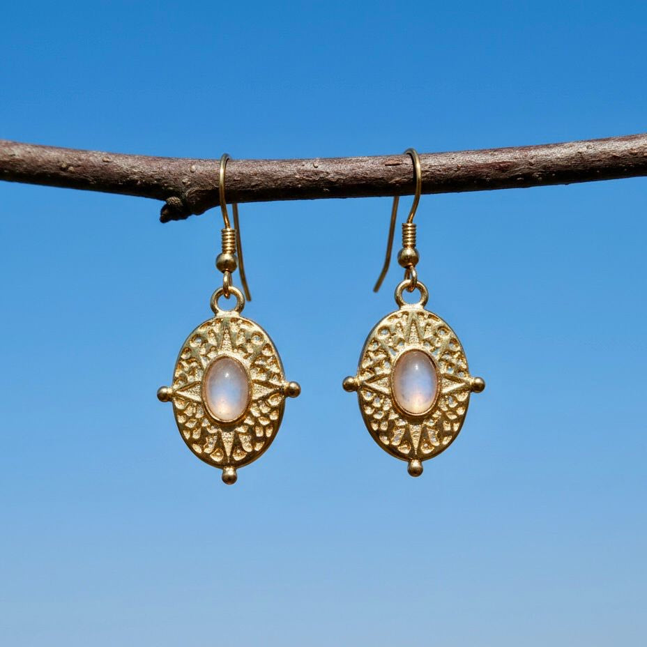 Deze verfijnde vergulde roestvrijstalen oorbellen combineren tijdloze elegantie met de kracht van natuurlijke edelstenen. Verkrijgbaar met lapis lazuli, maansteen, groene aventurijn of labradoriet, brengen ze elk hun eigen energie: van diepe wijsheid tot zachte intuïtie en mysterieuze glans. De oorhaakjes zijn gemaakt van hypoallergeen (316l) roestvrij staal, waardoor ze comfortabel en veilig zijn voor gevoelige oren.